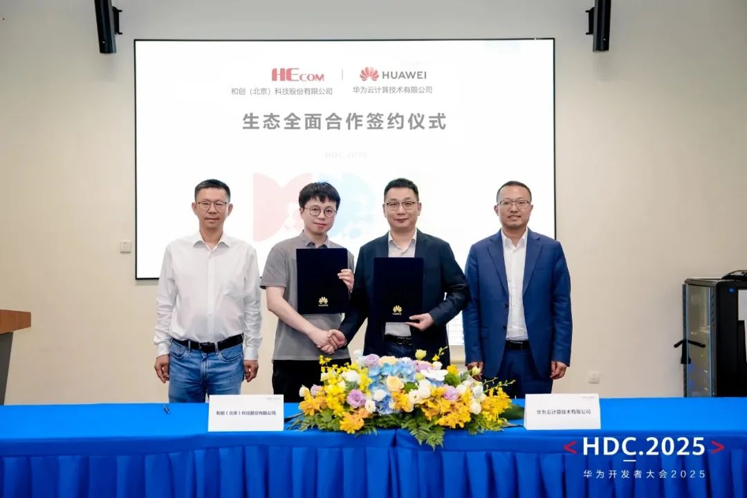 在2025華為開發(fā)者大會(huì)期間,和創(chuàng)(北京)科技股份有限公司(以下簡稱“和創(chuàng)科技”)與華為云計(jì)算技術(shù)有限公司(以下簡稱“華為云”)簽署生態(tài)全面合作協(xié)議,雙方將在聯(lián)合解決方案構(gòu)建、AI應(yīng)用開發(fā)及行業(yè)大模型共創(chuàng)等領(lǐng)域展開全方位合作,共同推動(dòng)新一代人工智能產(chǎn)品在工程行業(yè)的應(yīng)用落地。在和創(chuàng)科技CEO劉學(xué)臣、華為云生態(tài)發(fā)展與運(yùn)營部部長陶志強(qiáng)的共同見證下,和創(chuàng)科技副總裁王禹、華為云北京云生態(tài)發(fā)展與運(yùn)營部部長代表雙方完成簽約。