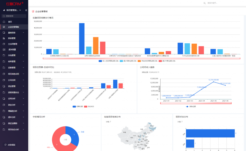 紅圈系統為公司提供項目全過程利潤可視化功能,通過實時數據分析,幫助企業追蹤項目的各項成本和收益,優化資源配置。