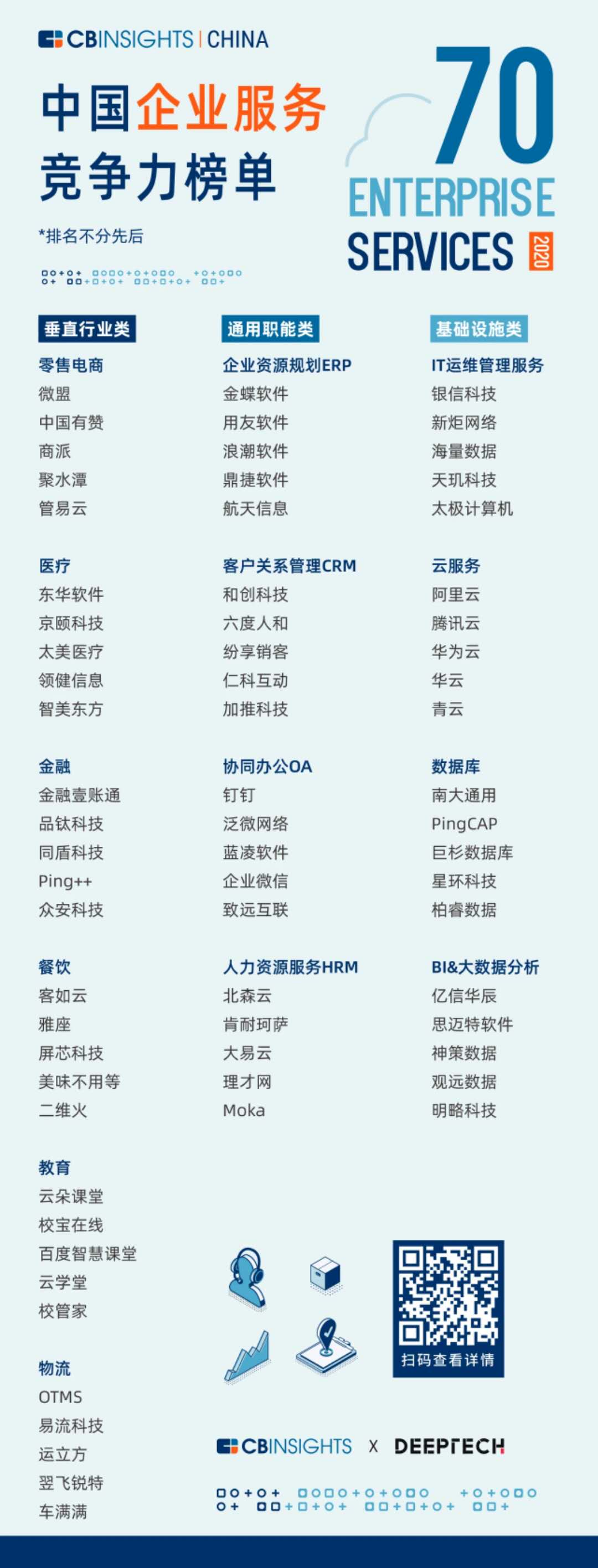 紅圈等70家中國公司上榜!CB?Insights首次發(fā)布中國企業(yè)服務(wù)競爭力榜單