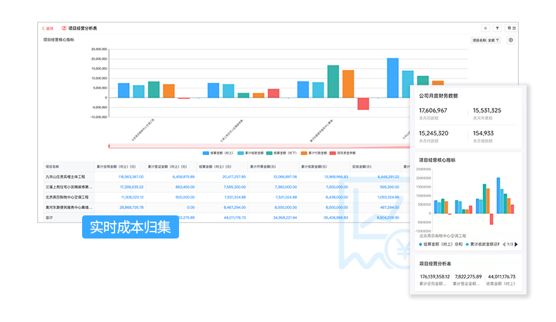 提供動(dòng)態(tài)成本管理,實(shí)時(shí)成本歸集,隨時(shí)掌握項(xiàng)目收支、盈利狀況。