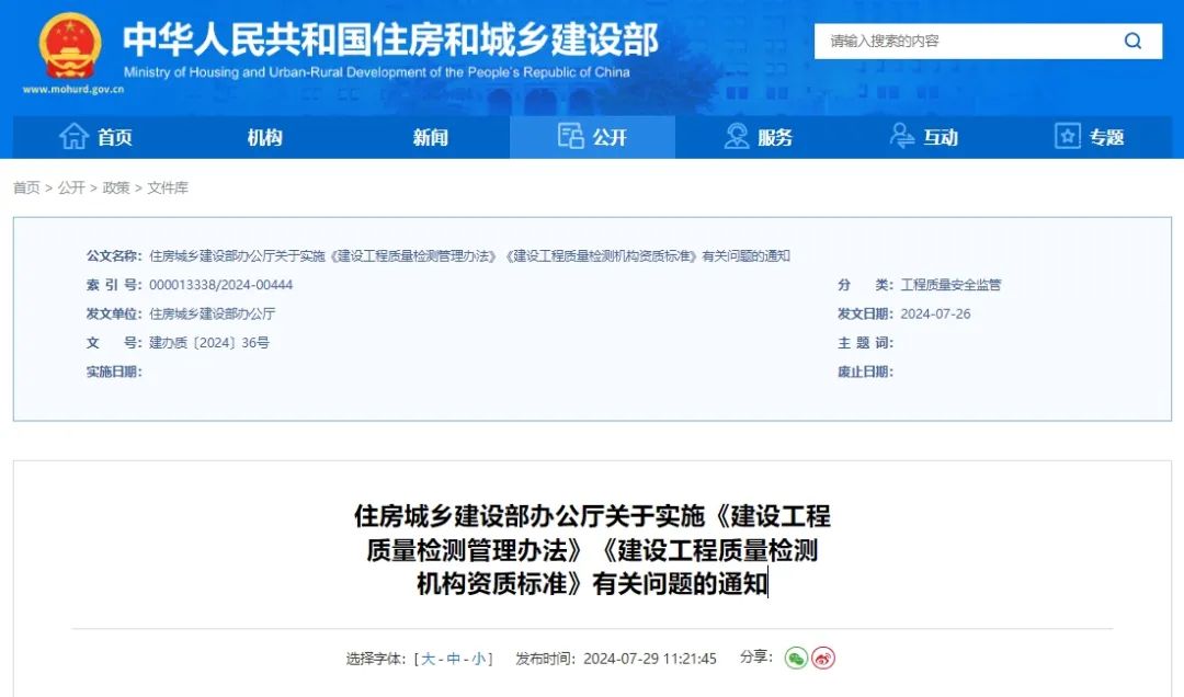 7月29日,住房城鄉(xiāng)建設(shè)部辦公廳發(fā)布關(guān)于實施《建設(shè)工程質(zhì)量檢測管理辦法》《建設(shè)工程質(zhì)量檢測機構(gòu)資質(zhì)標準》有關(guān)問題的通知。通知提出:為保障建設(shè)工程質(zhì)量檢測新舊資質(zhì)平穩(wěn)過渡,新舊資質(zhì)過渡期延長至2024年10月31日。
