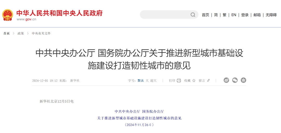 中辦、國辦發(fā)布重磅意見!推進新型城市基礎(chǔ)設(shè)施建設(shè)打造韌性城市