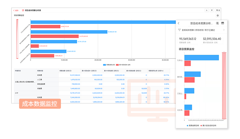 以前受到傳統(tǒng)管理手段的限制,當(dāng)項(xiàng)目實(shí)施過(guò)程中出現(xiàn)人機(jī)材成本超標(biāo)時(shí),管理層無(wú)法掌握項(xiàng)目的實(shí)際情況,不能及時(shí)做出相應(yīng)的糾偏決策,往往到項(xiàng)目結(jié)算時(shí)才能發(fā)現(xiàn)成本投入遠(yuǎn)遠(yuǎn)大于預(yù)期。紅圈系統(tǒng)的動(dòng)態(tài)成本管控功能實(shí)現(xiàn)了預(yù)算成本與動(dòng)態(tài)成本分析,同時(shí)能夠進(jìn)行超標(biāo)流程管控,企業(yè)管理者能夠隨時(shí)查看費(fèi)用實(shí)時(shí)狀況,項(xiàng)目利潤(rùn)可控。