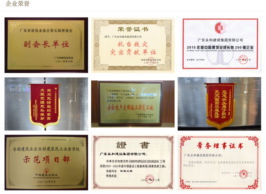 廣東永和建設(shè)集團(tuán)有限公司成立于2007年3月,注冊資金6億元,擁有3個(gè)一級資質(zhì):建筑工程施工總承包一級、市政公用工程施工總承包一級、建筑裝修裝飾工程一級,以及建筑機(jī)電安裝工程等17項(xiàng)專業(yè)承包資質(zhì),現(xiàn)已發(fā)展為集工程設(shè)計(jì)、施工、建筑材料供應(yīng)鏈、建筑勞務(wù)輸出一體化多元化發(fā)展的廣東省百強(qiáng)民營企業(yè)。 集團(tuán)管理機(jī)構(gòu)健全,實(shí)行區(qū)域化經(jīng)營管理,隨著集團(tuán)業(yè)務(wù)的不斷拓展,項(xiàng)目遍及廣東、廣西、海南、江西等省份。