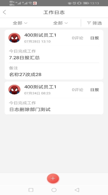 工作臺包括公告、考勤、日志、高級審批、商品、日程、客戶(可以自行排序,功能不同可以略有影響)